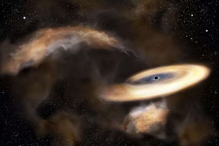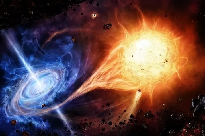想象一下,一个难以置信的场景:银河系外的巨大黑洞接近一颗新爆发的超新星,以每秒数百公里的速度朝我们飞来。