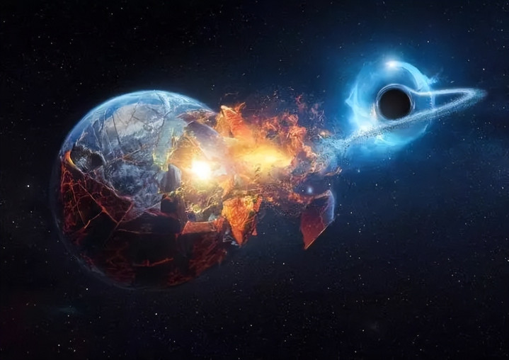 在奇点附近,我们周围的整个宇宙将会收缩成一道薄薄的蓝光,之后,曾经是地球的残骸将进入一种无限扭曲的状态,这是我们所知的空间和时间的尽头。